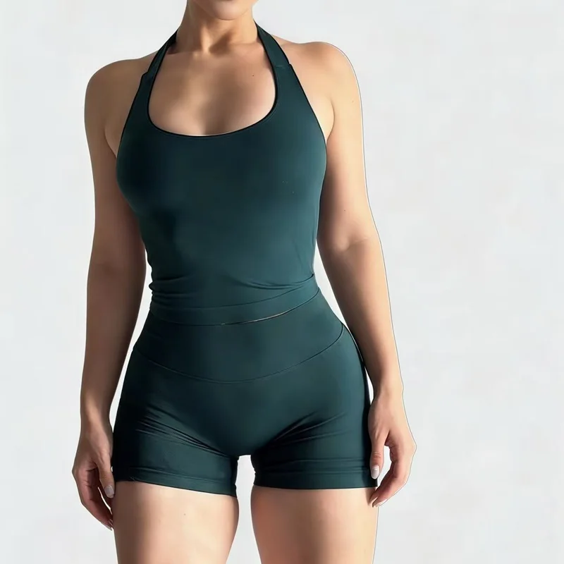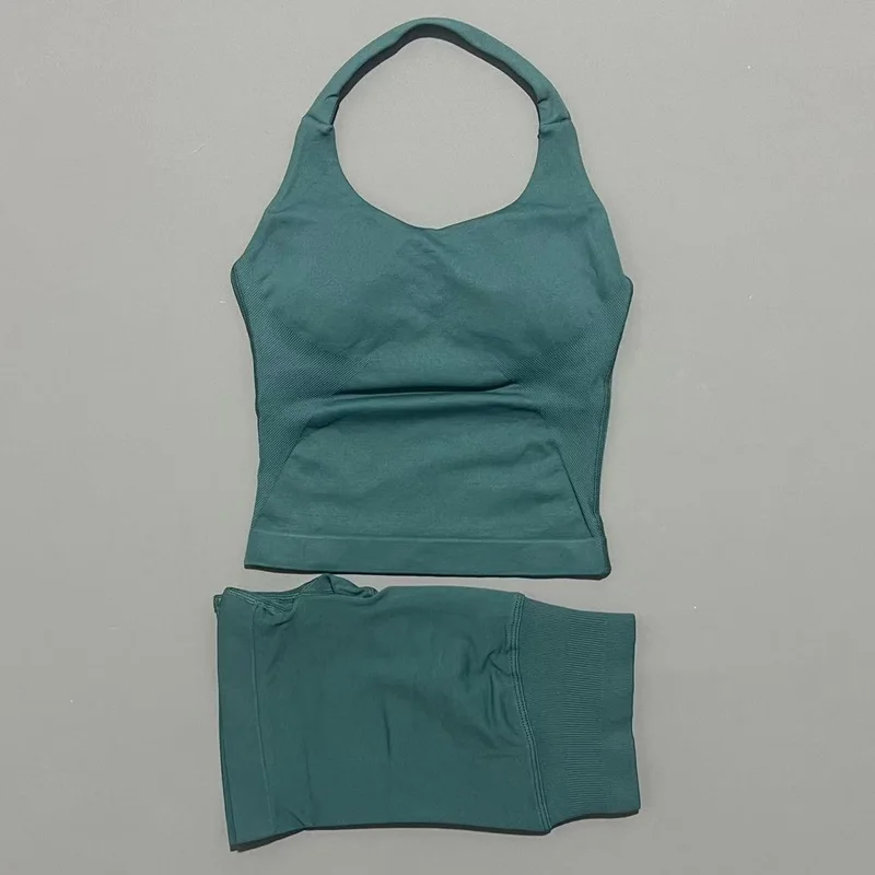 2 Pieces Sports Halter Top Strappy Bra Shorts Set Women Seamless Yoga Gym Leggings Set Running Fitness Sports Shorts Suit