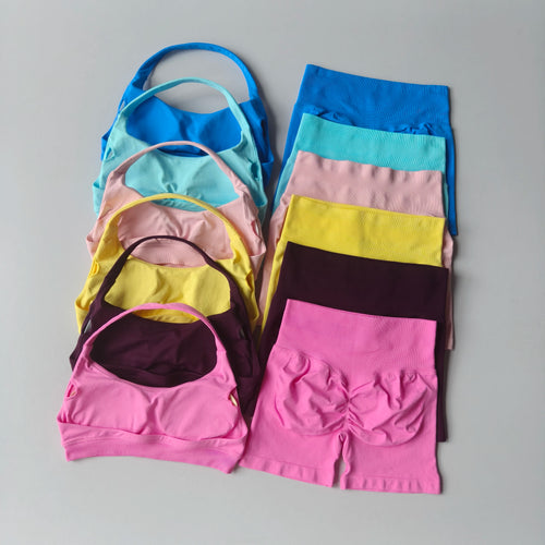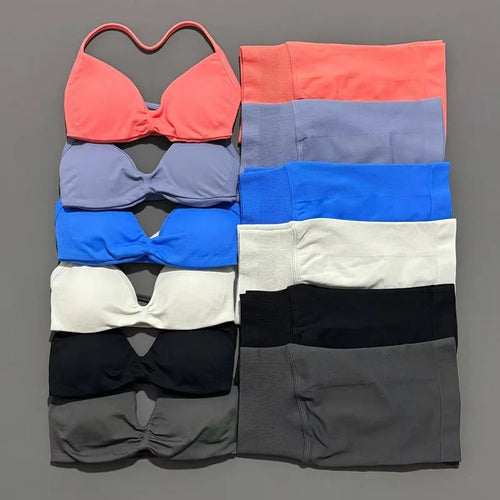 2 Pieces Sports Halter Top Strappy Bra Shorts Set Women Seamless Yoga Gym Leggings Set Running Fitness Sports Shorts Suit